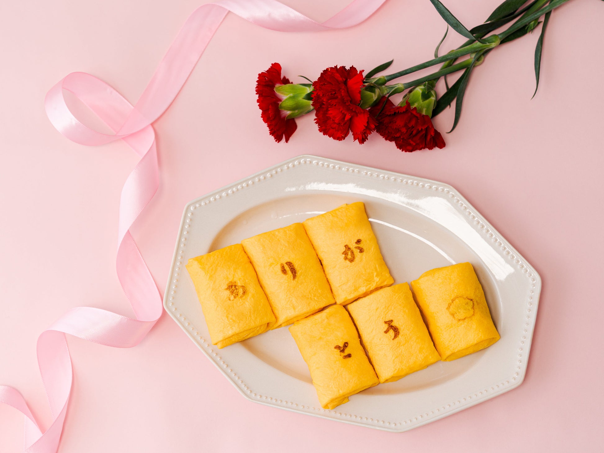「ありがとう」焼印をおし、母の日メッセージカード付きで母の日仕様にあつらえた期間限定商品。2026年の母の日ギフトに、京都の老舗の味を贈ってはいかがでしょうか。